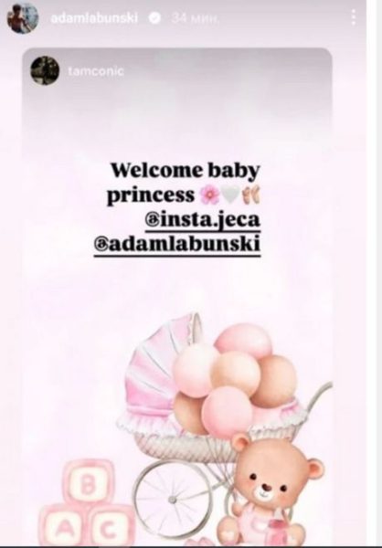 Adam Labunski postao je otac malene devojčice i srećnu vest je podelio sa svojim pratiocima na Instagramu.